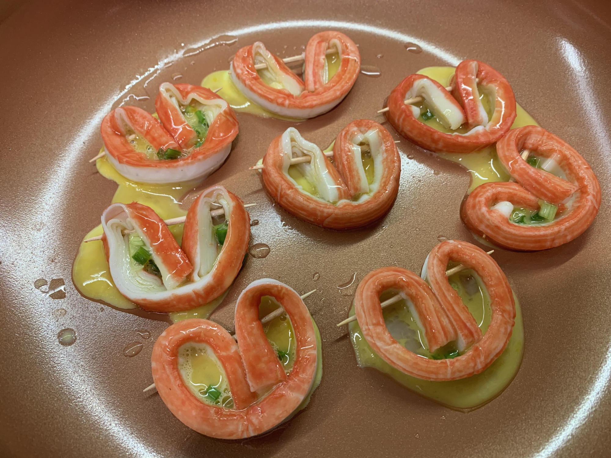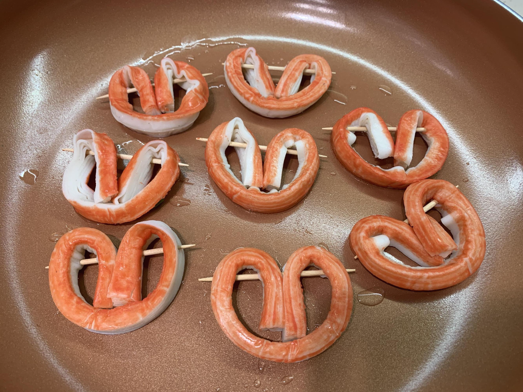 길게 자른 맛살을 하트 모양으로 만든 후에