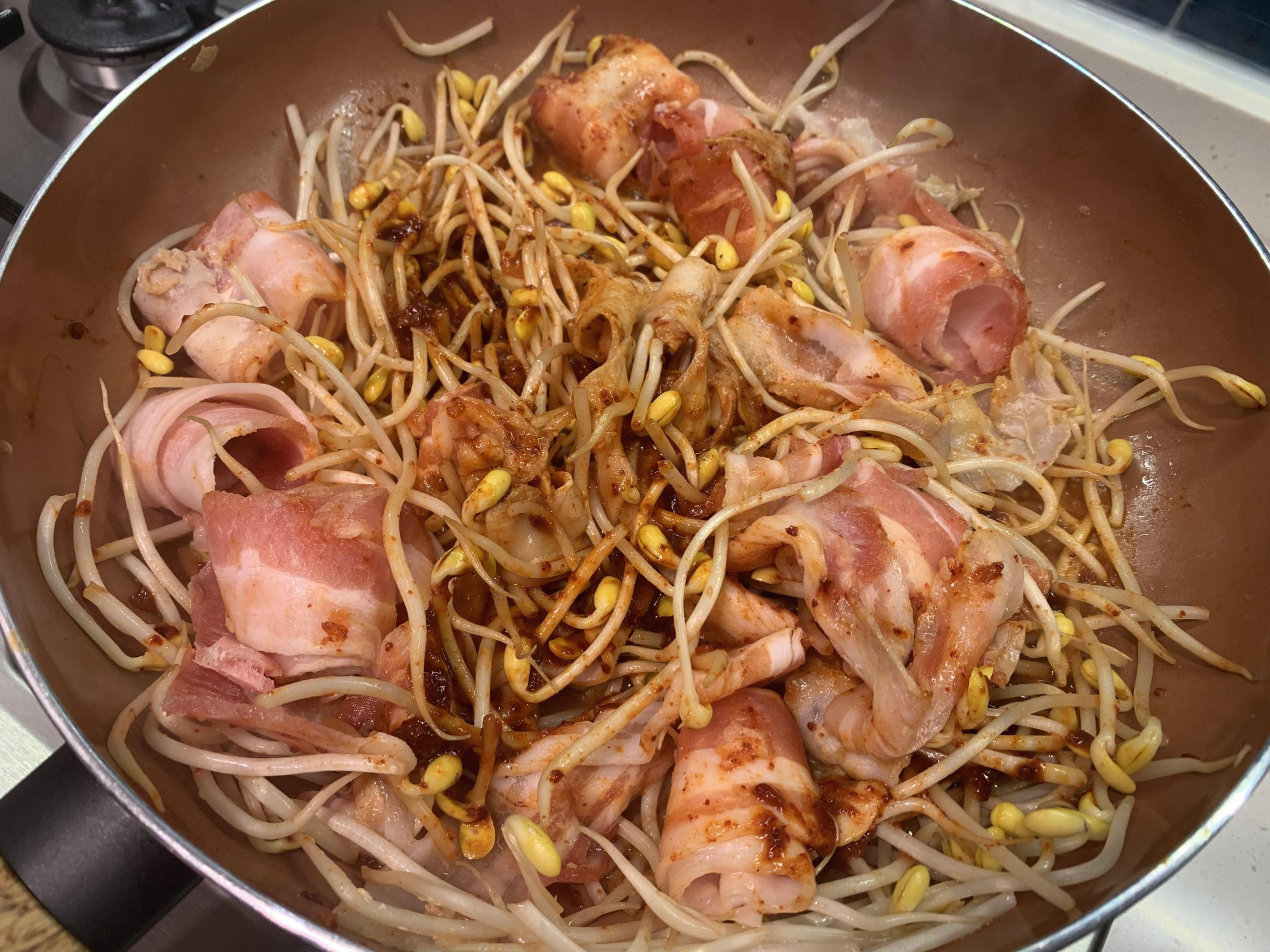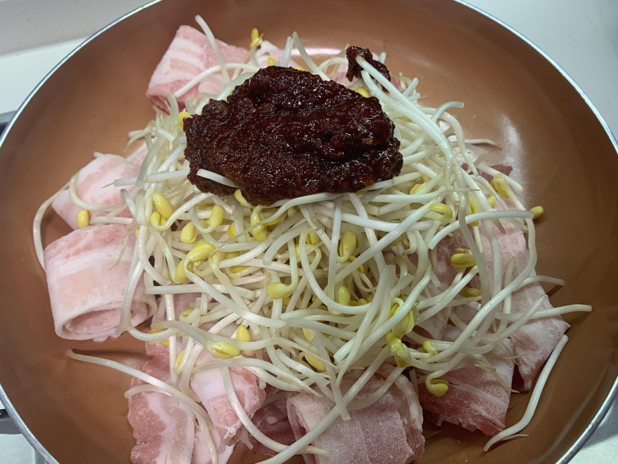 재료는 대패삼겹살과 콩나물, 양념장이면 끝
