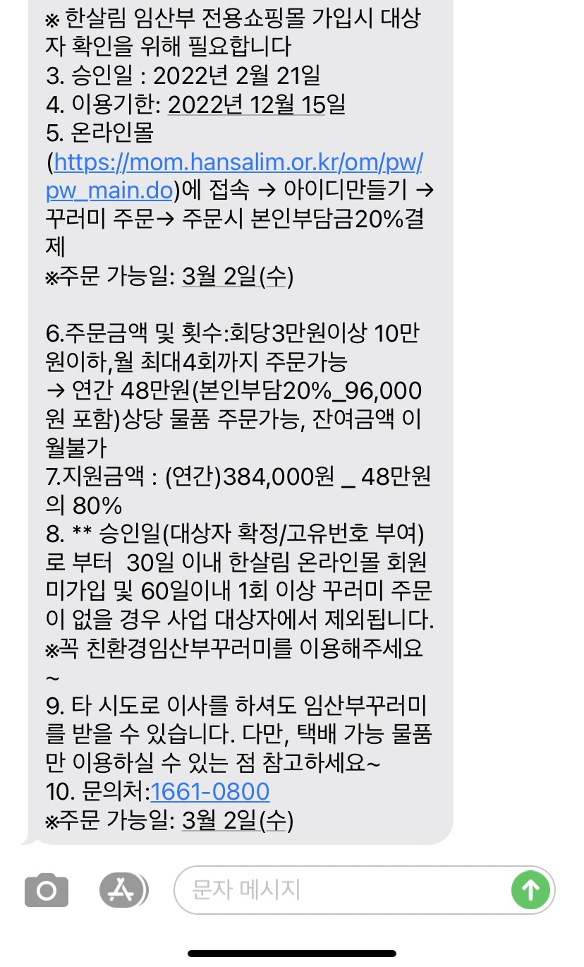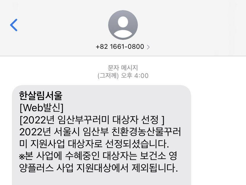 2022 임산부 친환경 농산물 꾸러미 대상자 선정 문자를 받았어요