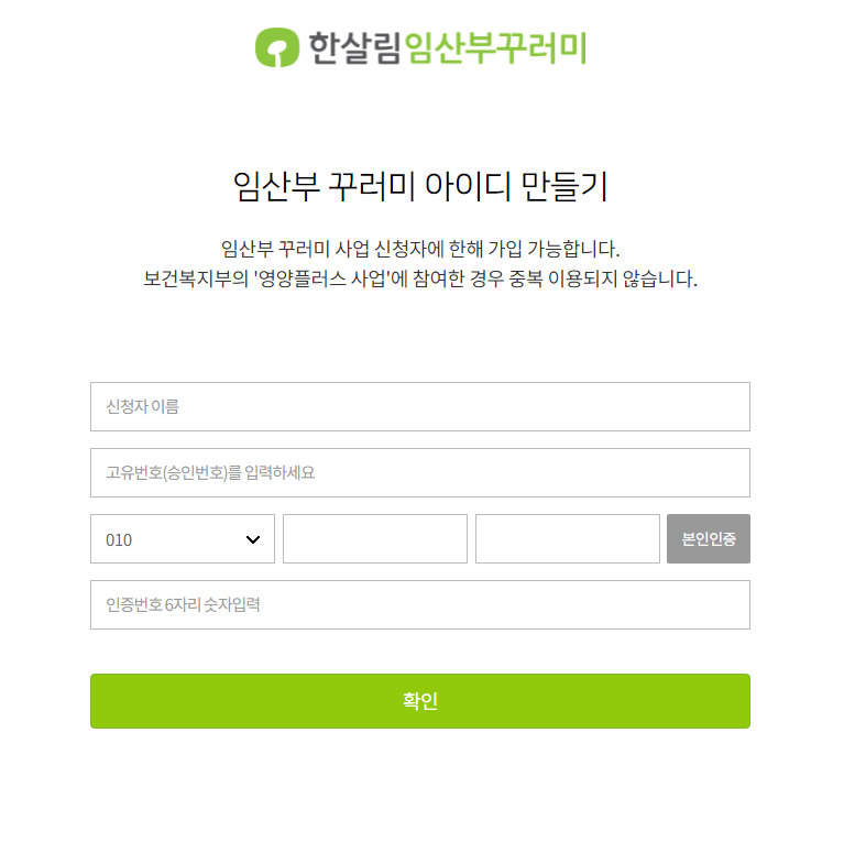 임산부 고유번호가 함께 발송됩니다