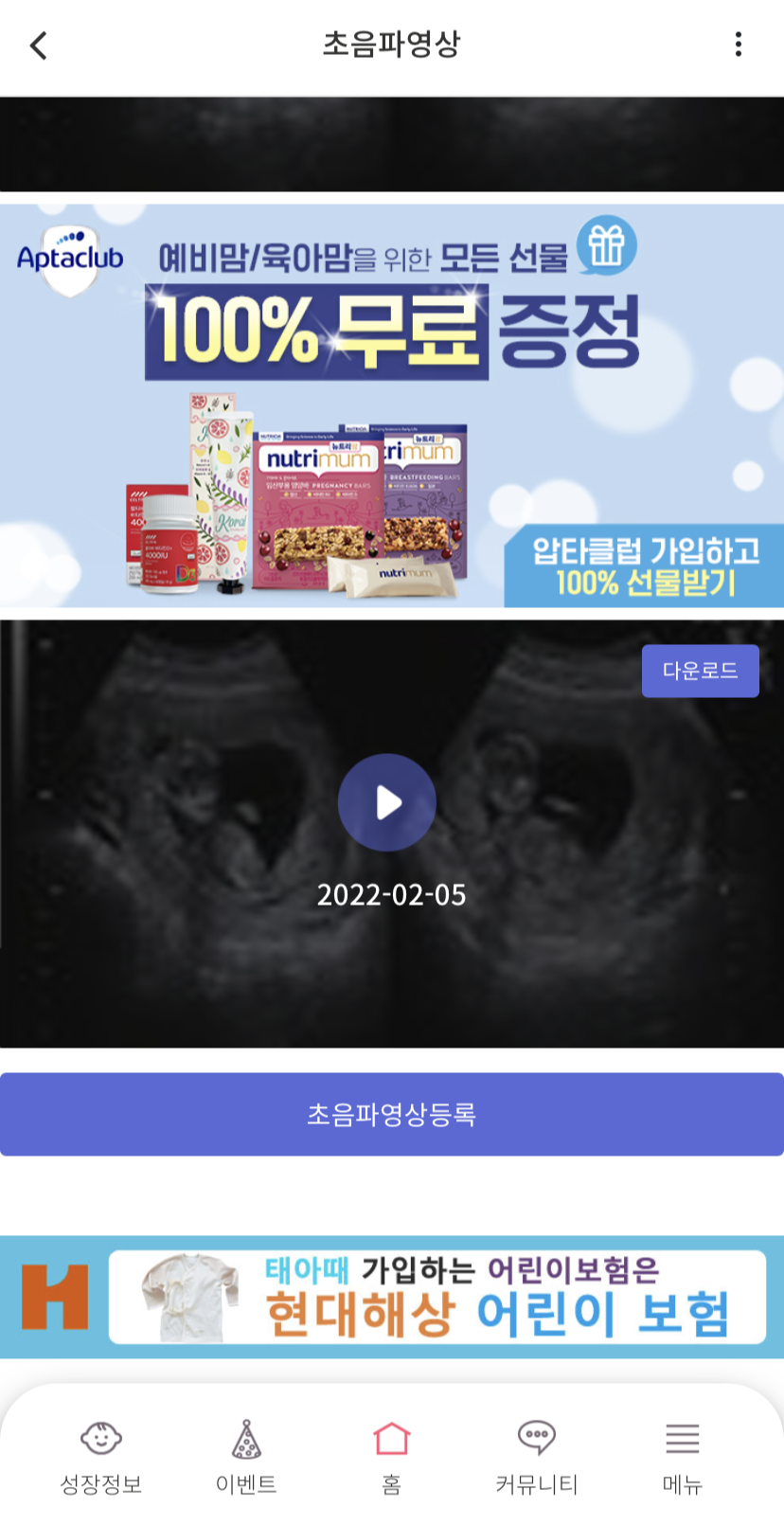 병원에서 진료 본 초음파 영상을 확인할 수 도 있습니다