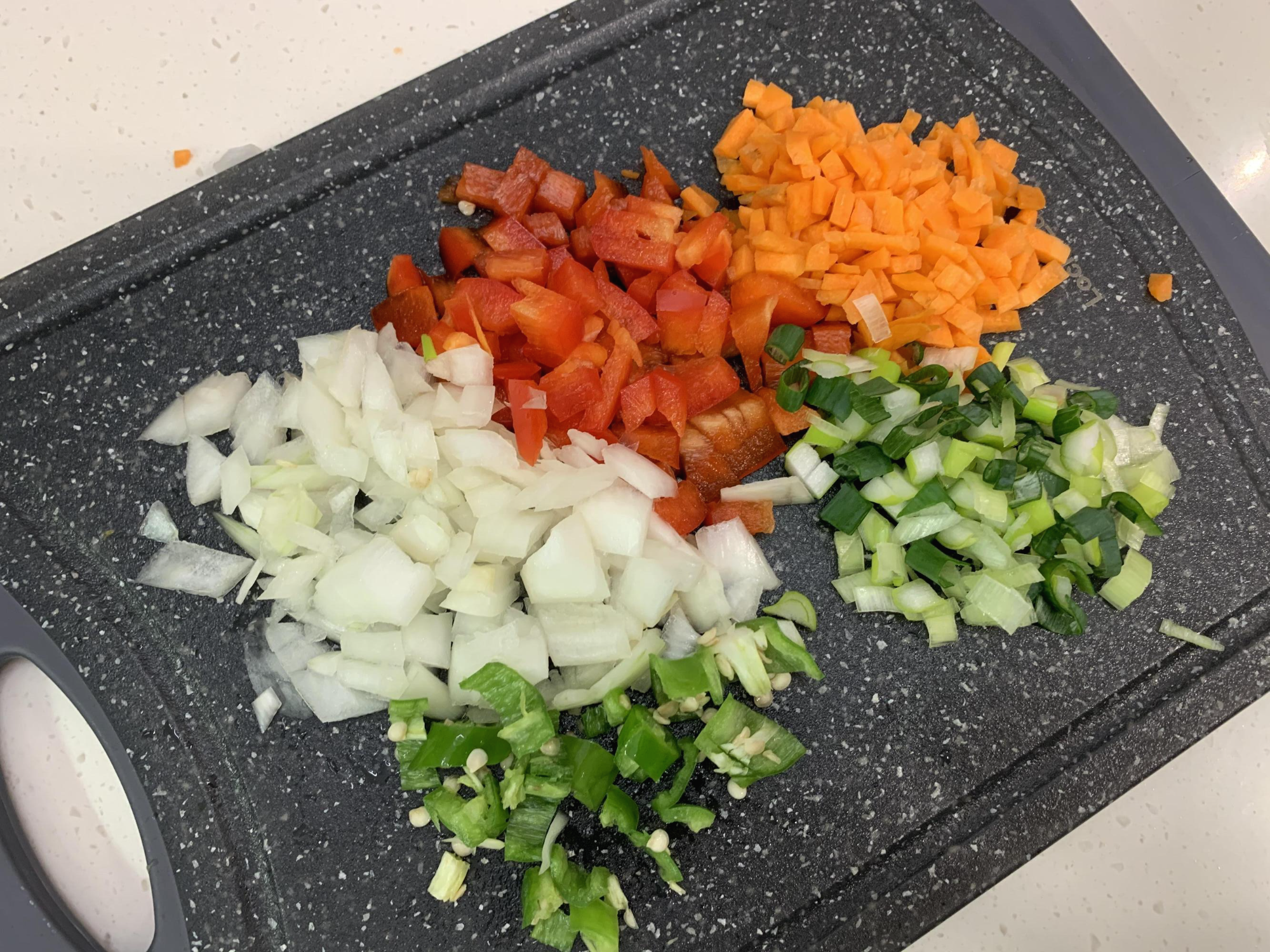 준비한 야채를 너무 크지 않은 크기로 다져줍니다