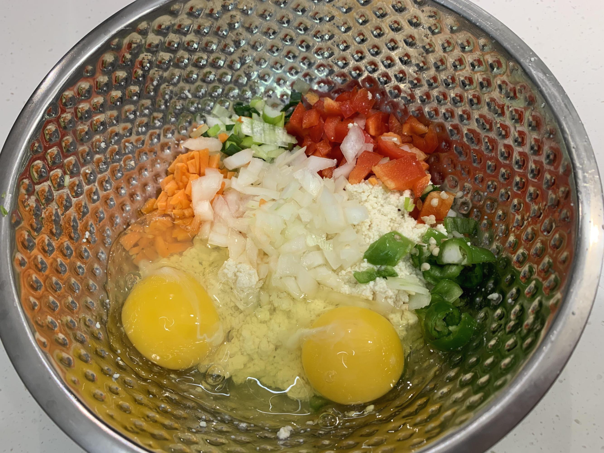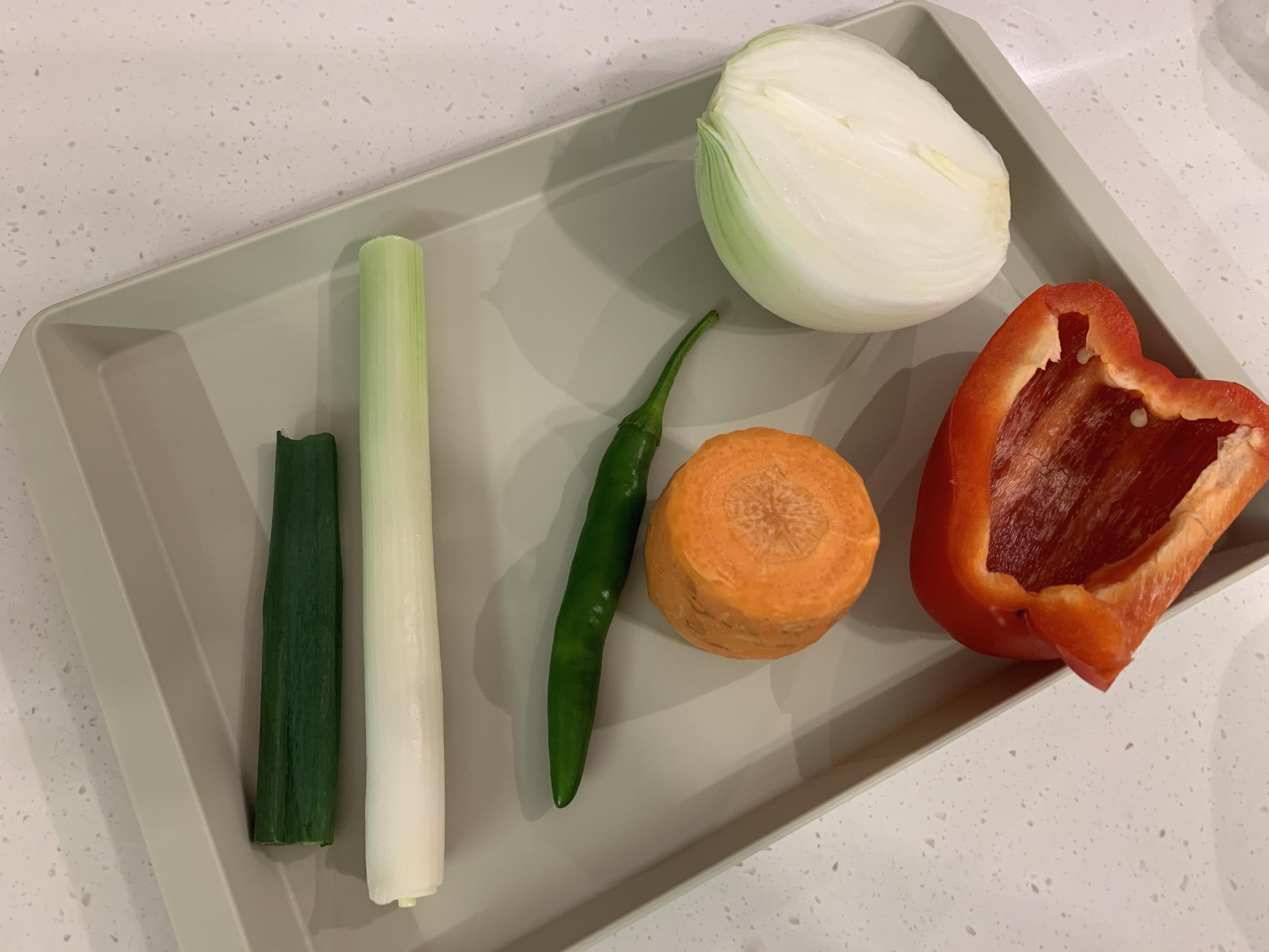 재료는 대파 / 청양고추 / 당근 / 파프리카 / 양파 / 두부 반모