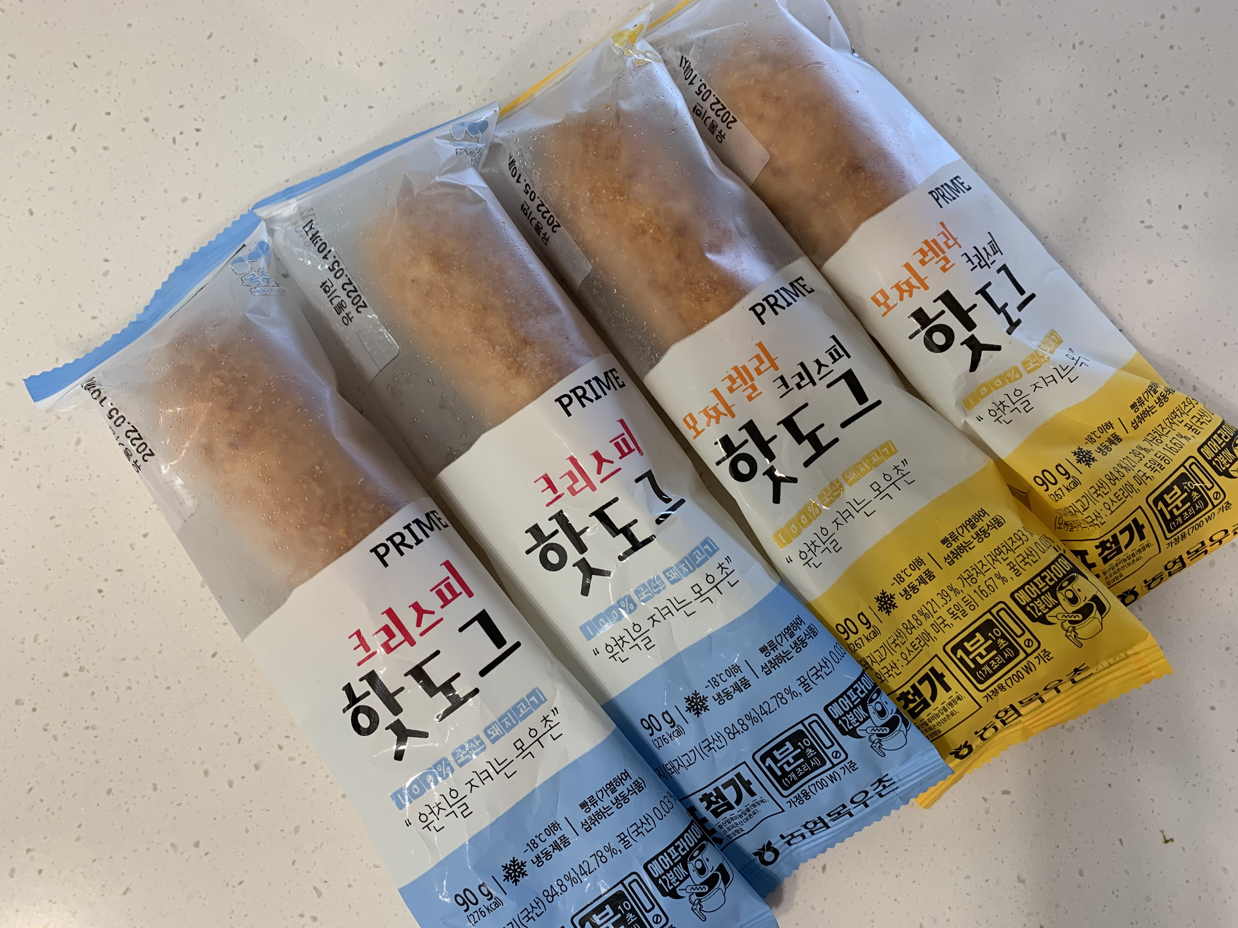 크리스피/모짜렐라핫도그의 차이는 윗부분에 모짜렐라 유무예요