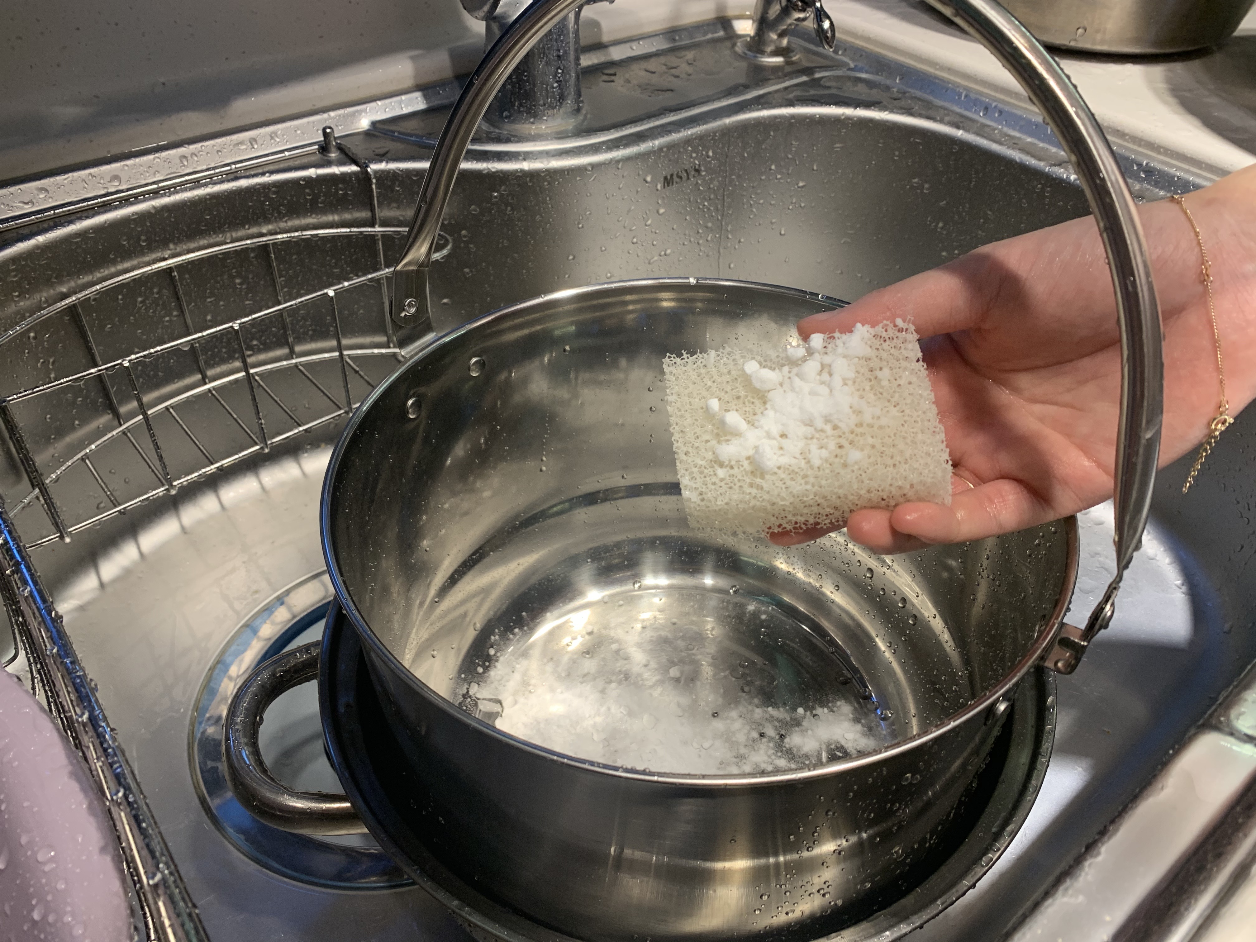 베이킹소다를 이용해 열탕 냄비를 세척해줄게요