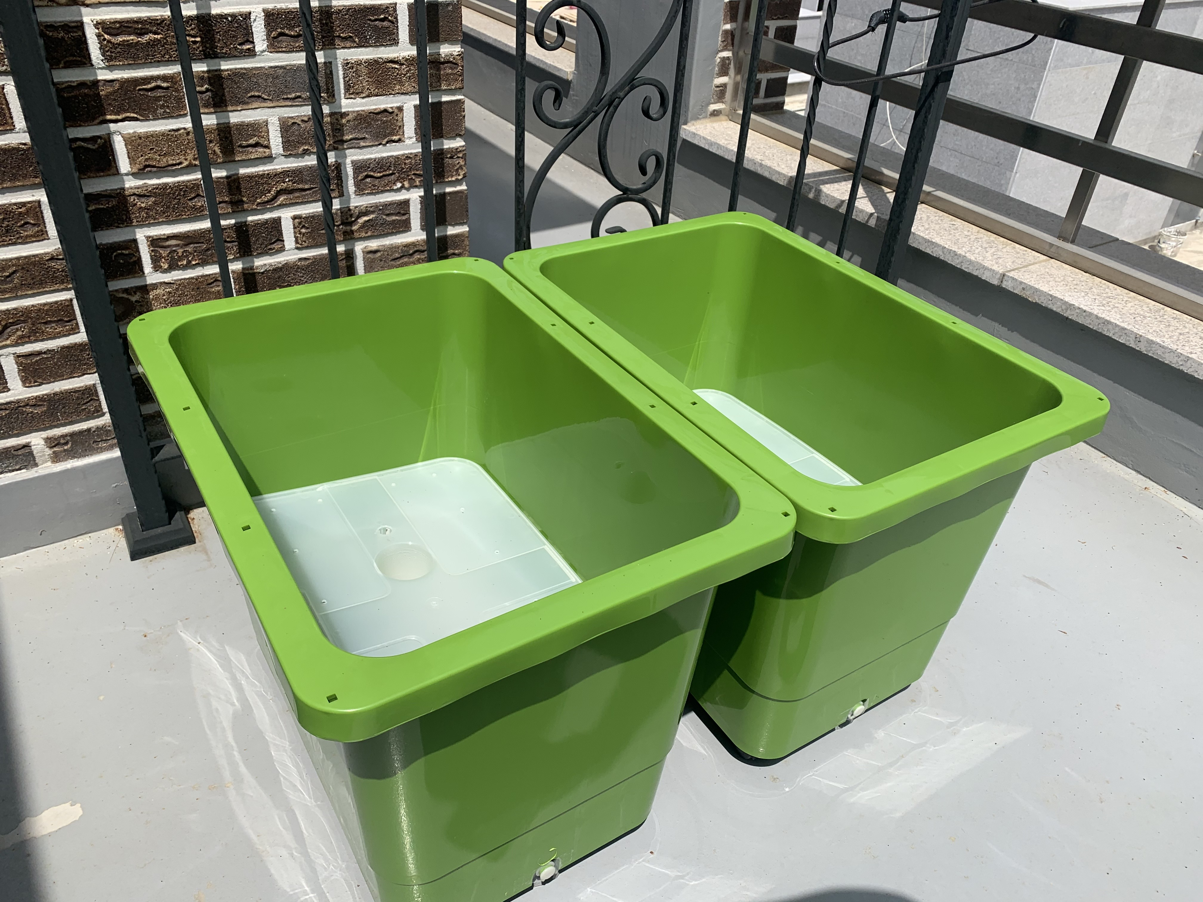 바퀴 달린 연두색 미니 텃밭상자 2개랑