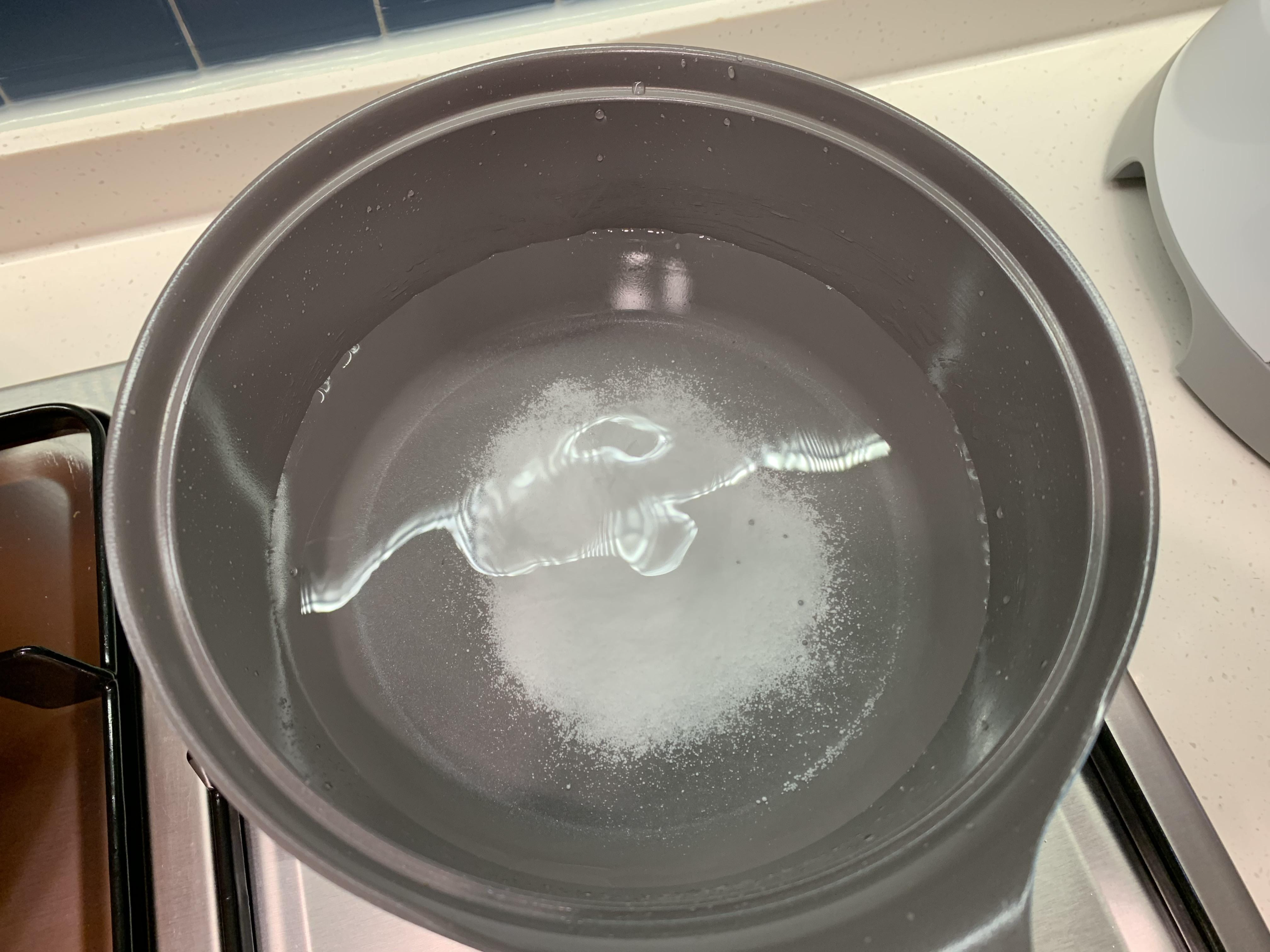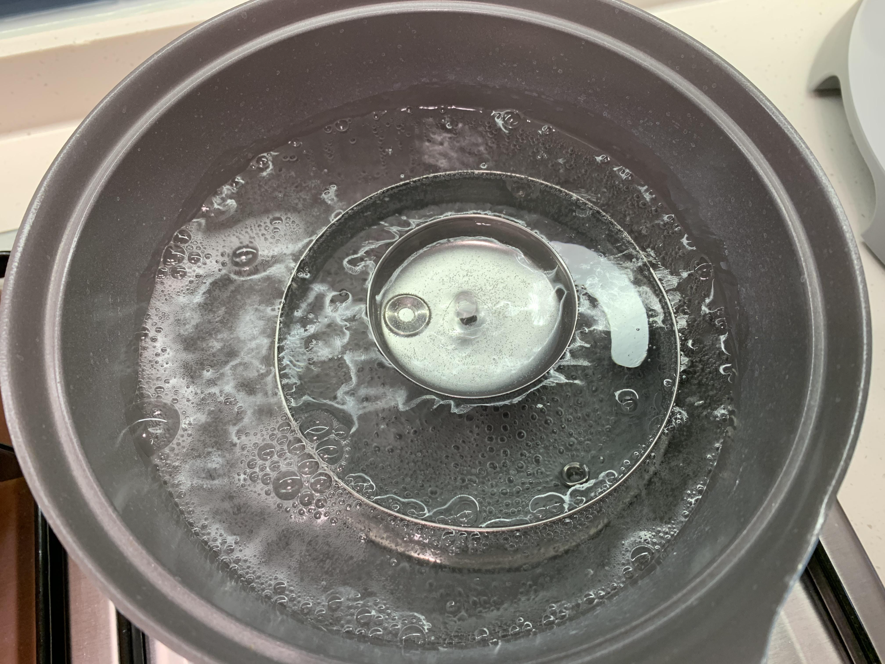 2. 빈 냄비에 뚜껑이 잠길 정도로 물과 과탄산수소 한수저를 넣고 끓인 후