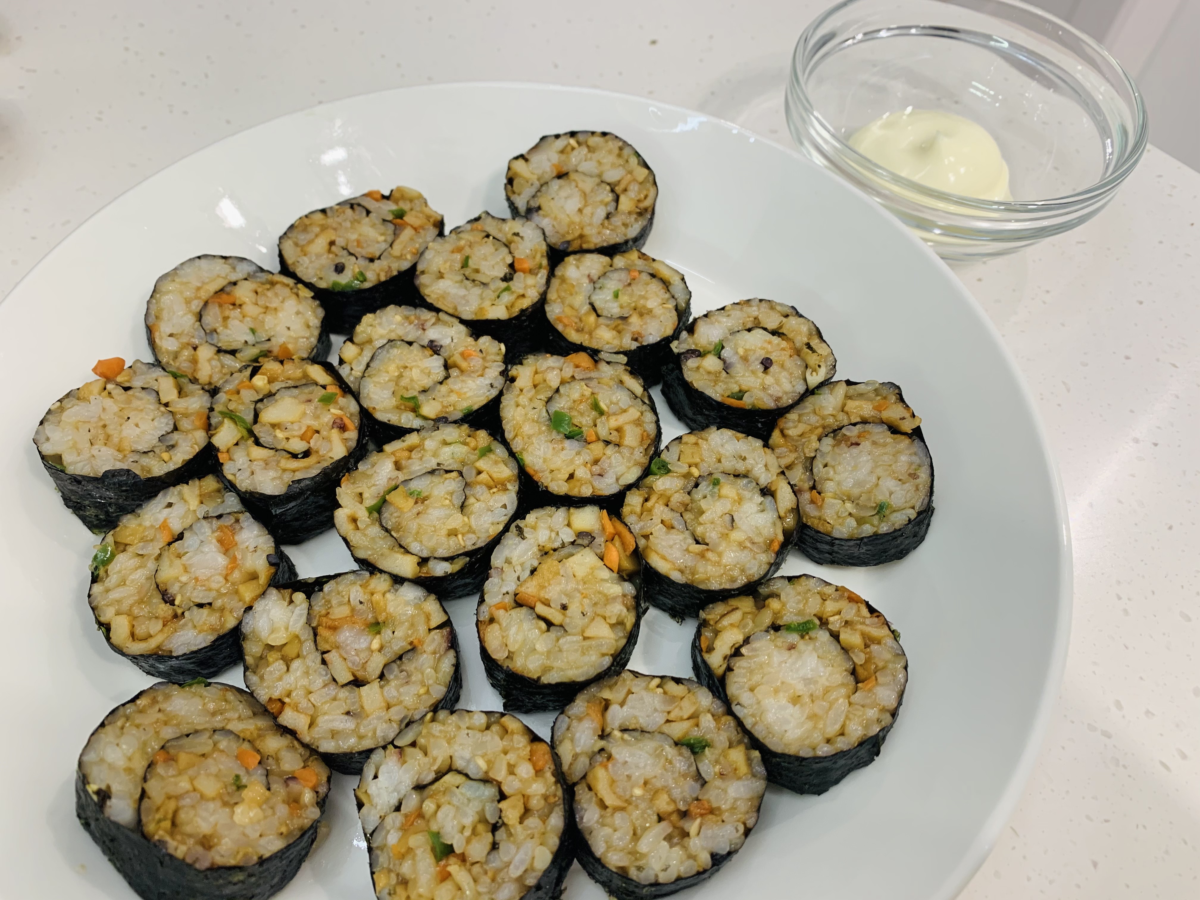 그러면 감칠맛 나는 매콤한 땡고추 김밥 완성!