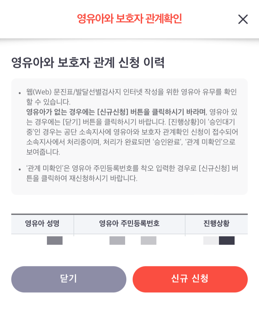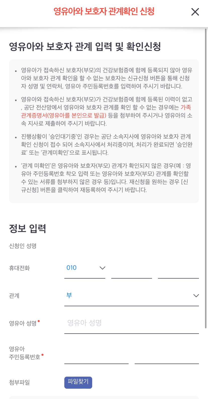 영유아와 보호자 관계 확인신청이 완료됐으면