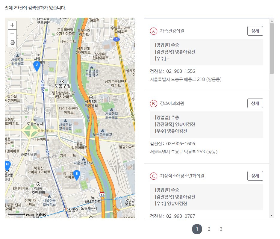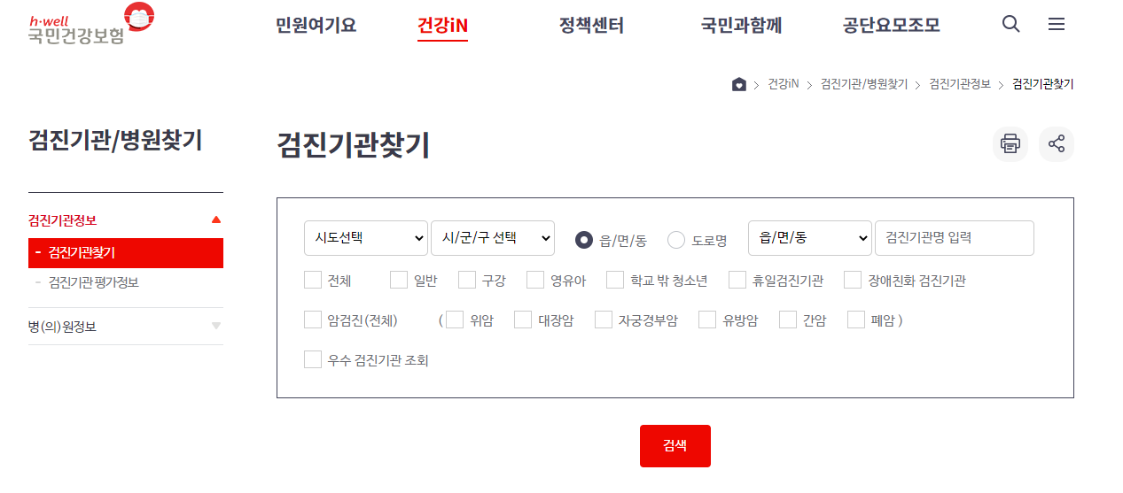 건강 IN - 검진기관 찾기 - 해당 시도군 입력 - 영유아 체크