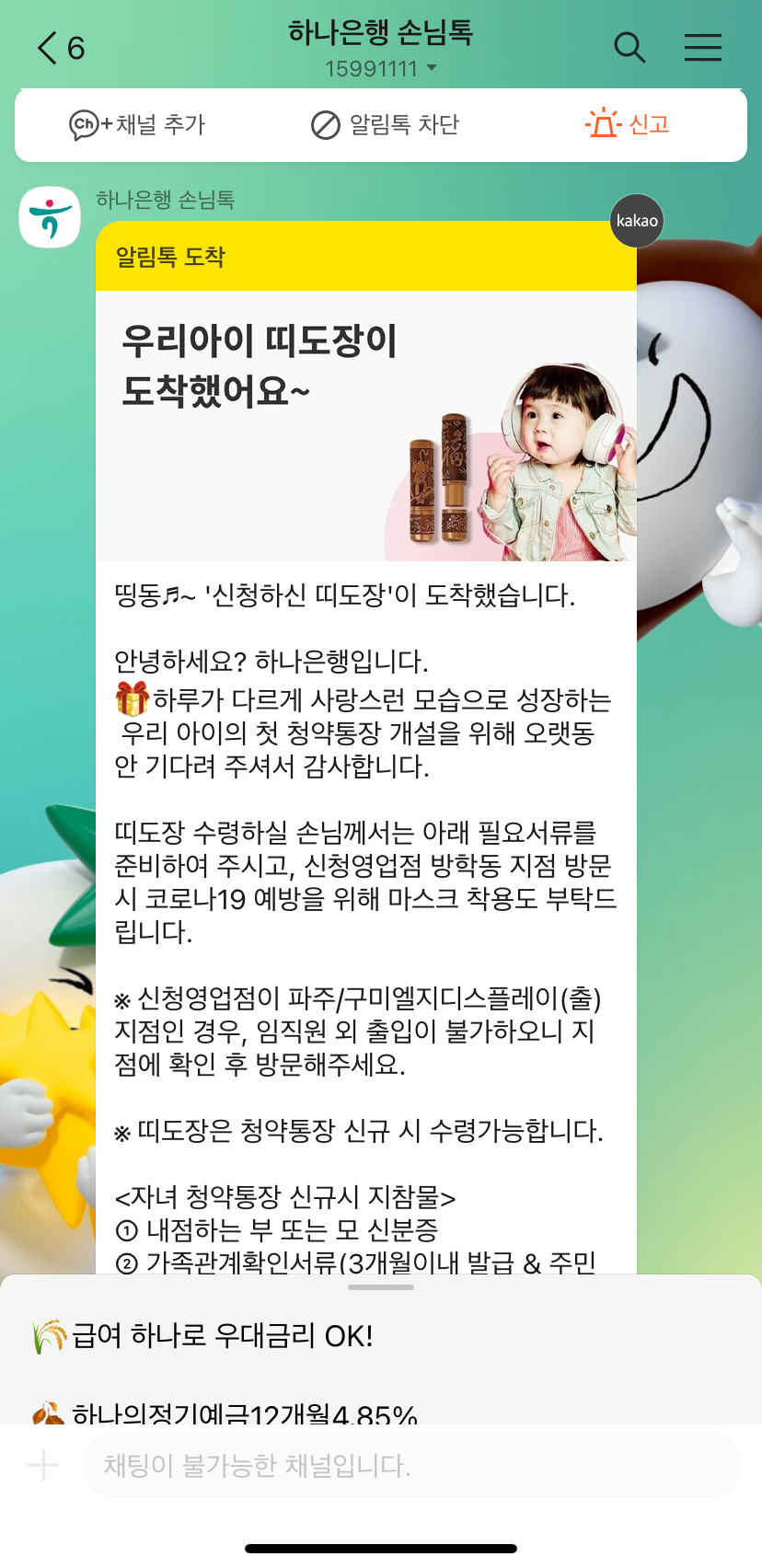 근데 통장을 만들려면 아기 도장이 필요하잖아요?