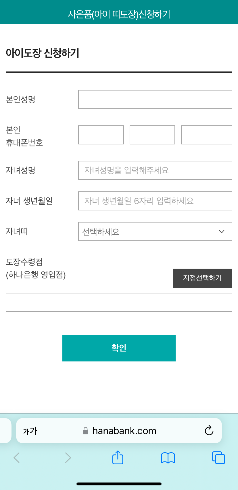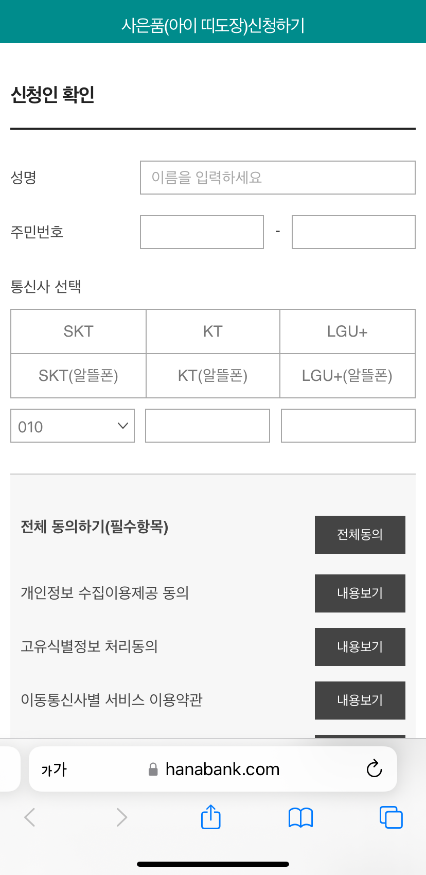 본인이 방문 수령할 하나은행 영업점까지 선택해주면 돼요