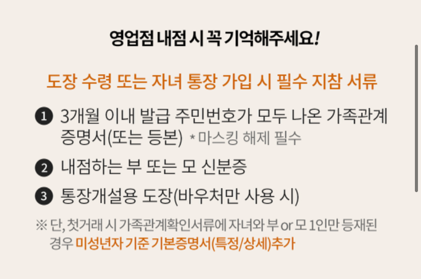 영업점에 방문 시 구비서류를 지참해야 합니다