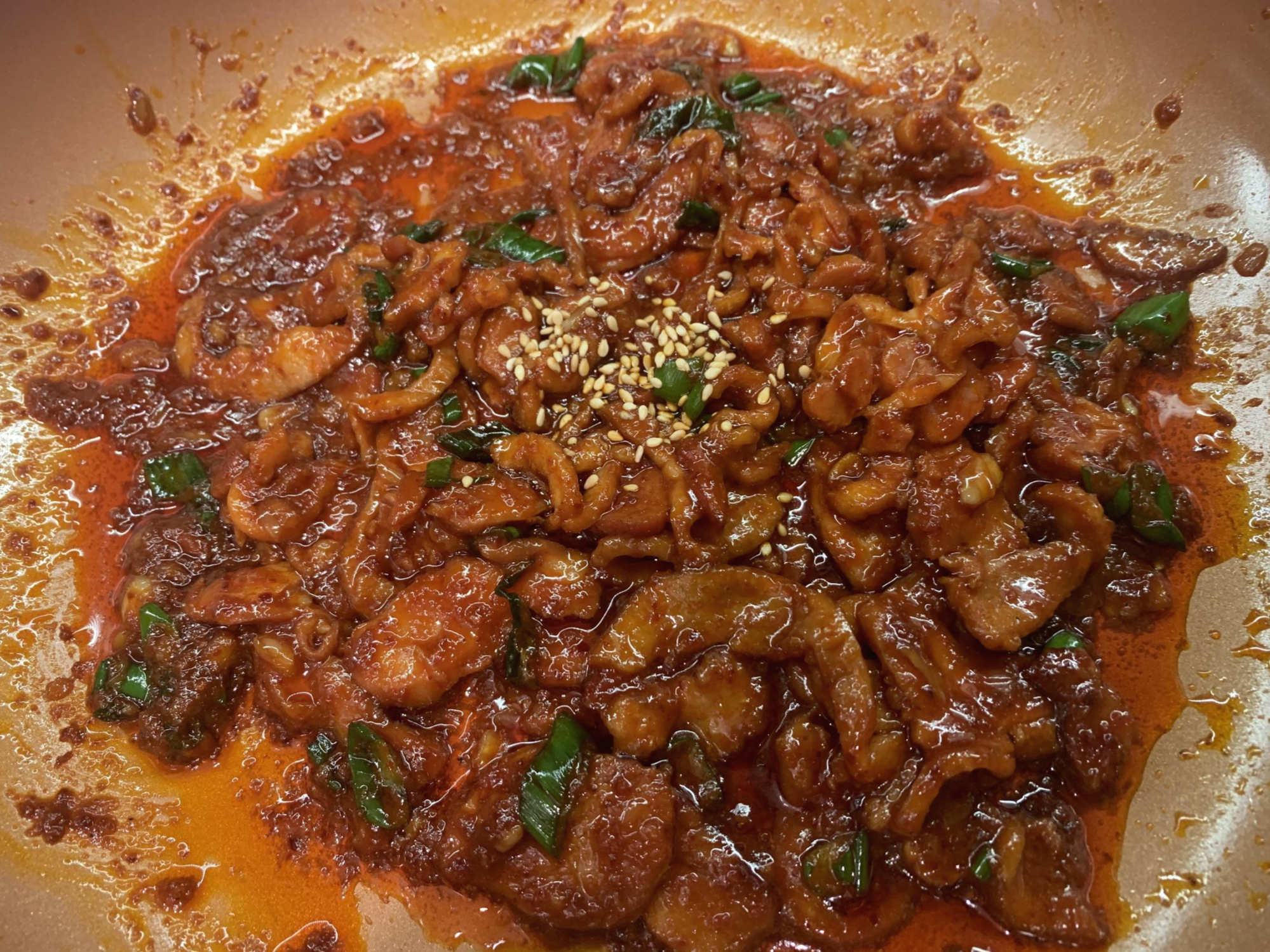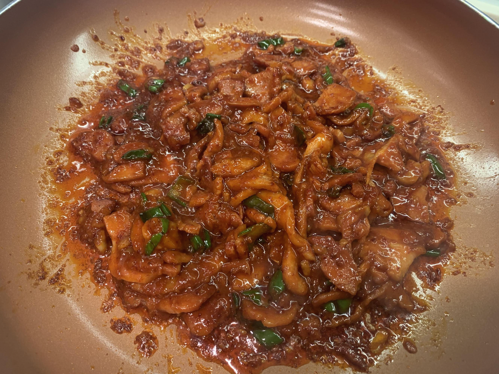5. 달궈진 팬에 주물럭을 올려 볶아주세요