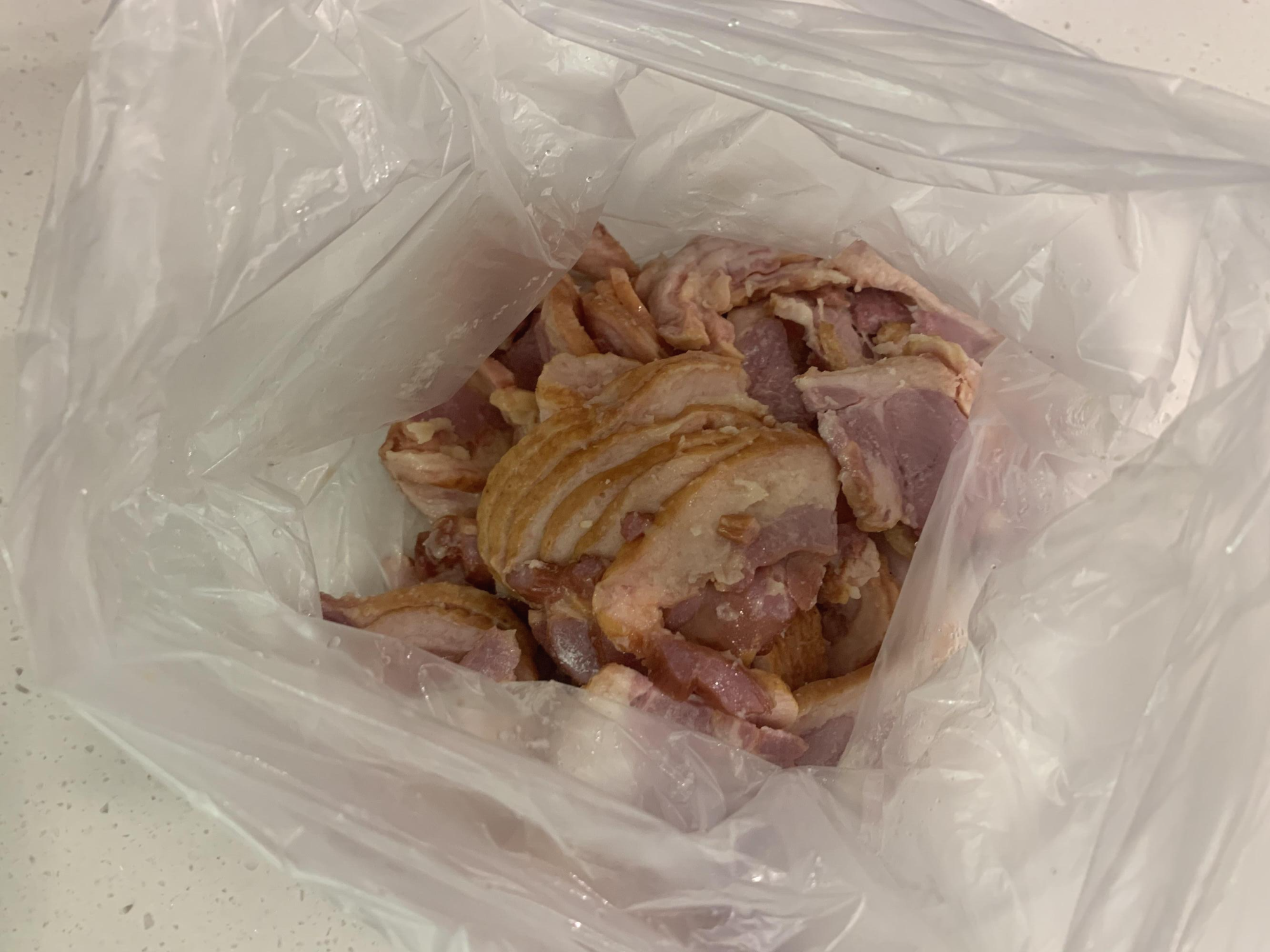 커다란 비닐에 훈제오리를 넣고